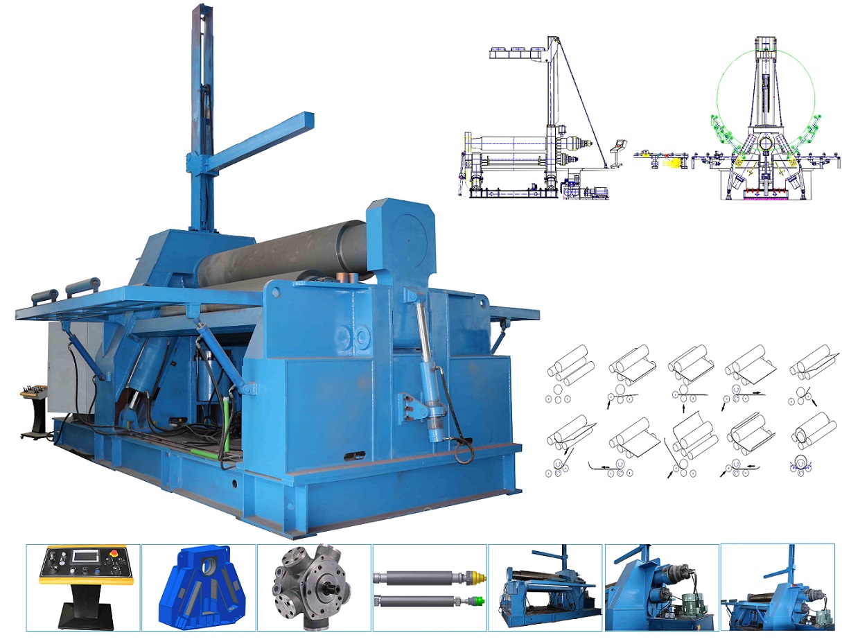 W12NC-60x3000四輥卷板機是一種雙夾板彎板機。上下輥都是Du立驅動的。軸座直線導軌涂有減摩材料,無需維護,適合重型負載,定位平穩穩定。滾子上裝有調心滾子軸承。所有合金鋼輥均經過感應淬火和熱處理。經過感應淬火處理后,所有的輥都將被研磨和拋光。
