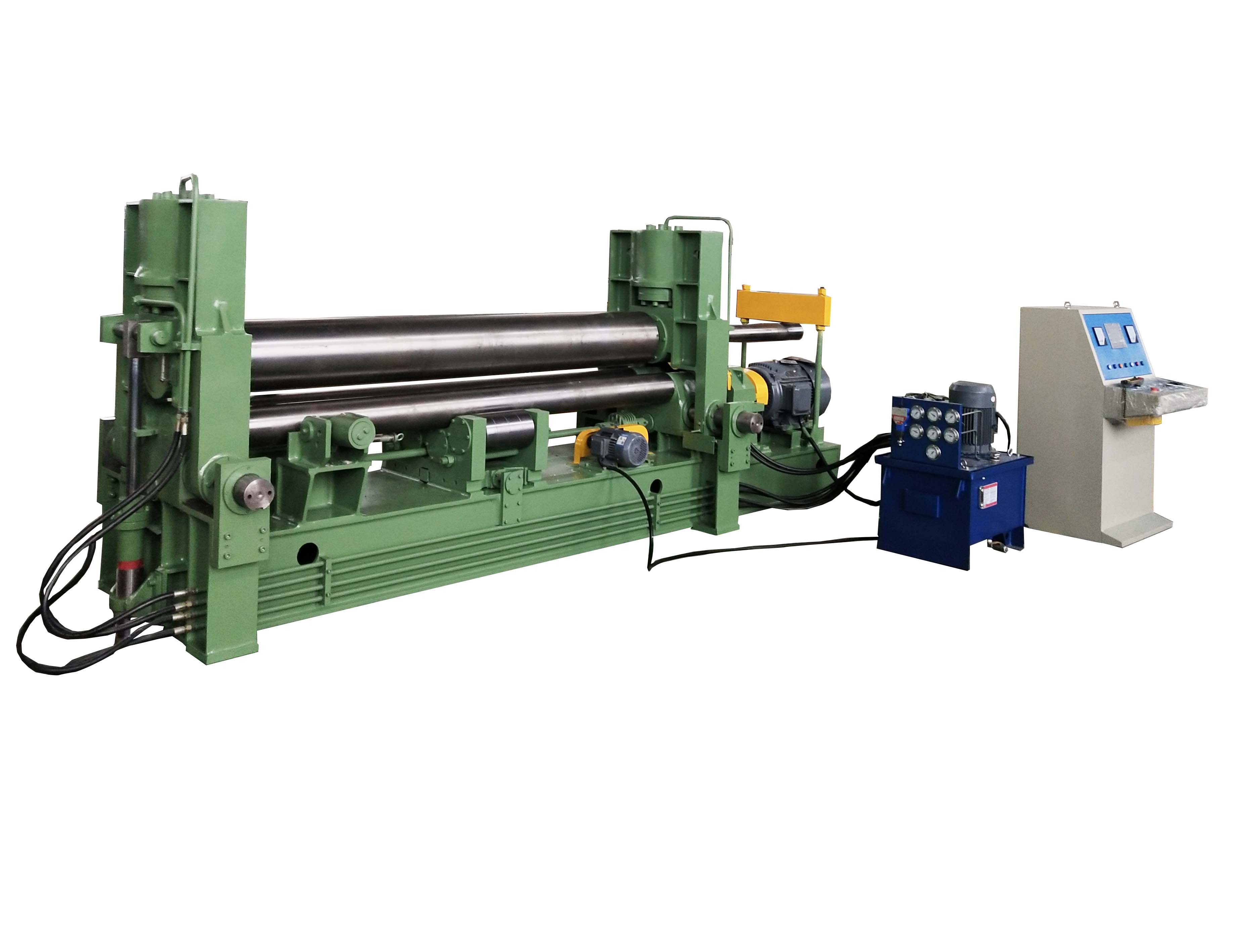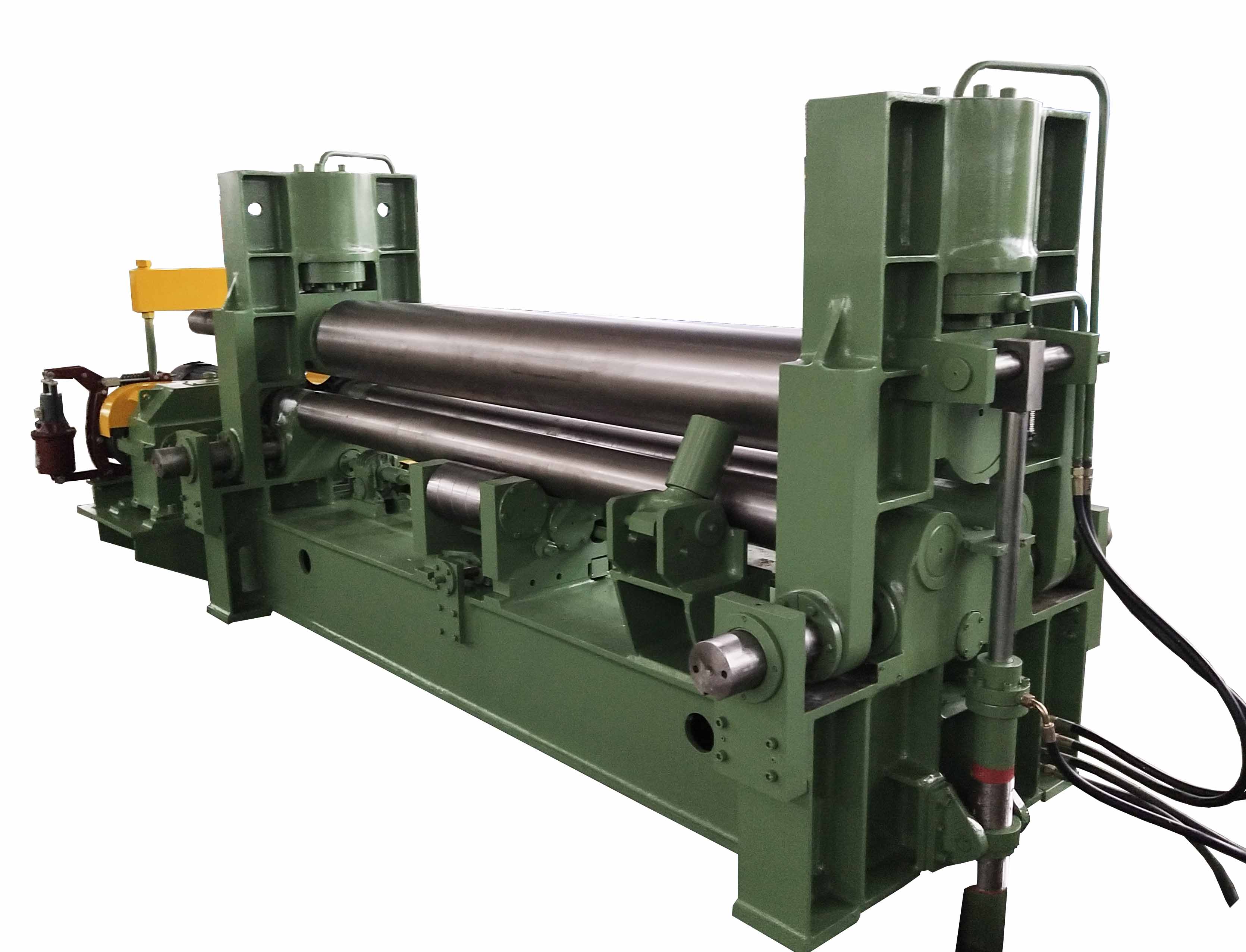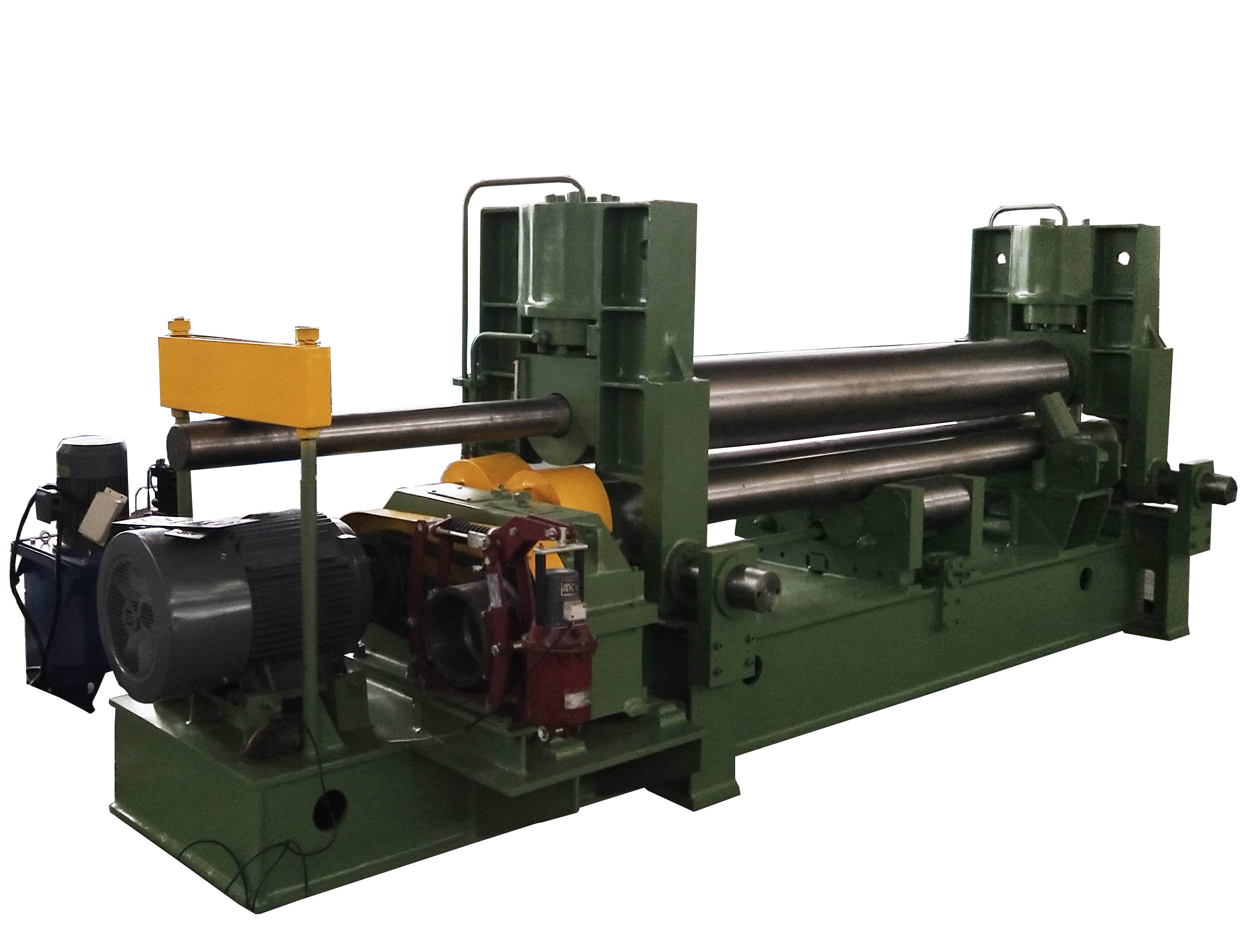 W11SNC萬能式三輥卷板機是一種雙夾板彎板機。 上輥為液壓驅動。 上輥可水平和垂直調節,兩個下輥是固定的。 所有合金鋼輥均經過感應淬火和熱處理。 經過感應淬火處理后,所有的輥都將被研磨和拋光。