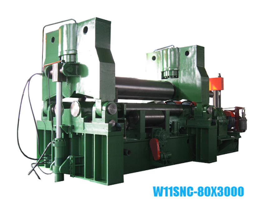 W11SNC萬能式三輥卷板機是一種雙夾板彎板機。 上輥為液壓驅動。 上輥可水平和垂直調節,兩個下輥是固定的。 所有合金鋼輥均經過感應淬火和熱處理。 經過感應淬火處理后,所有的輥都將被研磨和拋光。